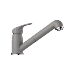Baterie de bucatarie BLANCO DARAS S cu aspect de SILGRANIT si dus extractibil, finisaj gri piatra, monocomanda, cartus cu disc ceramic, rotire 90°.