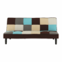 Canapea extensibilă, material textil bej/maro/albastru, ARLEKIN