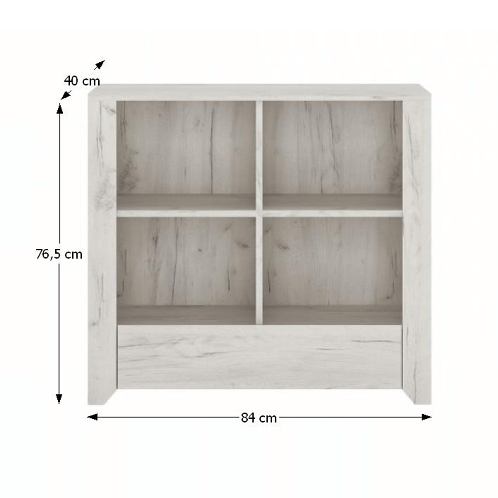 Comoda tipul 44 este împărţită în două părţi. În partea superioară veţi găsi o etajeră cu patru compartimente deschise de depozitare.