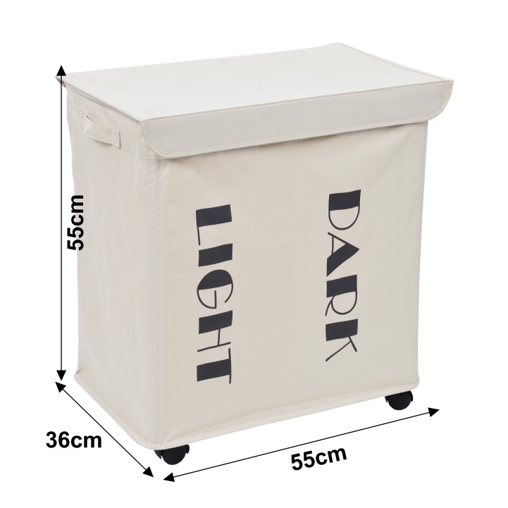 Poate că nu există om în lume care să se bucure de spălarea rufelor. Coşurile de rufe murdare sunt un accesoriu important şi practic pentru orice casă. Coşul de pânză mobil pt. lenjerie KODOR este nu numai practic, ci şi elegant, se potriveşte perfect în baia dvs. Pentru o mai bună sortare a hainelor, coşul este împărţit în două părţi – îmbrăcăminte deschisă la culoare şi îmbrăcăminte închisă la culoare. Fabricat din ţesătură de calitate în culoare bej şimetal stabil. Îl puteţi deplasa datorităroţilor de plastic. Permiteţi coşului de ţesătură KODOR, să aibă grijă de hoardele de lucruri murdare, lenjerie şi îmbrăcămintea dvs. Material: ţesătură/metal/plastic Culoare: bej Dimensiuni (LxGxÎ): 55x36x55 cm Spaţiu de stocare practic Construcţie de metal Împărţit în două părţi Pe roţi