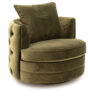 Fotoliul pivotant Jools este o piesa eleganta realizata in stil clasic cu spate circular si captusit cu tapiterie fina din catifea. Sezutul si perna cu umplutura moale asigura un nivel optim de confort pentru un moment de relaxare. Tapiteria este disponibila in 3 culori.