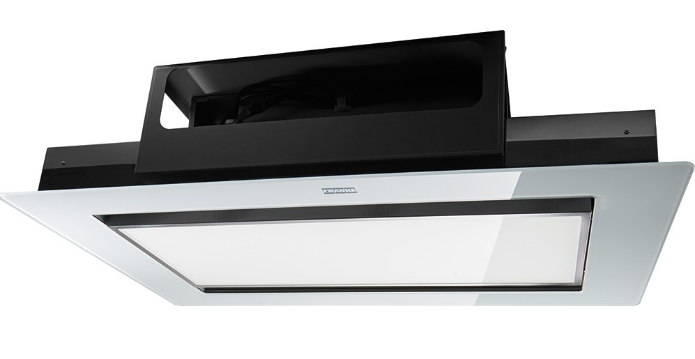 Hota Franke Mythos Flat FMYCF 906 WH 350.0518.554, Tip caseta (tavan), Capacitate 640 m3/H (intensiv, mod evacuare), 3 viteze+intensiv, Comanda Soft touch, Latime 94 cm, Finish sticla alba